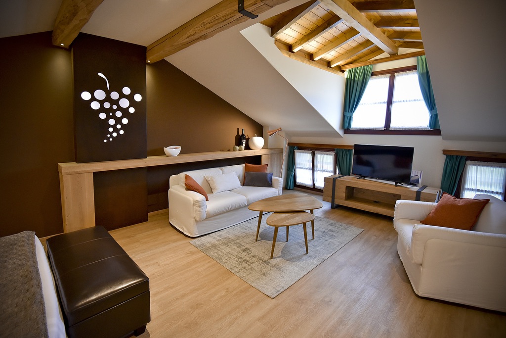 Unsere Zimmer befinden sich in den oberen Stockwerken eines Landhauses aus dem späten 19. Jahrhundert, in dem die Geschichte der Familie Venica ihren Anfang nahm und in dem heute im Erdgeschoss ein Teil des eindrucksvollen Weinkellers Venica & Venica untergebracht ist.