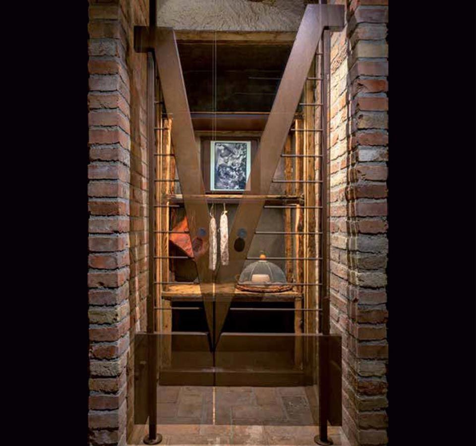 Im Laufe der Zeit sind Professionalität, Respekt vor dem Land und der Geschichte zu einer lebendigen Substanz geworden, die die Architektur des Weinguts Venica & Venica geprägt hat. Jedes Ambiente strahlt eine reife Schönheit aus, die Wände atmen Erinnerungen, und jede Ecke enthüllt Geschichten und Gedanken, wie die alte Speisekammer. Die Erfahrung des Lebens und Überlebens ist mit der Speisekammer verbunden. Nahrung nährt uns und führt uns zu jedem neuen Tag.